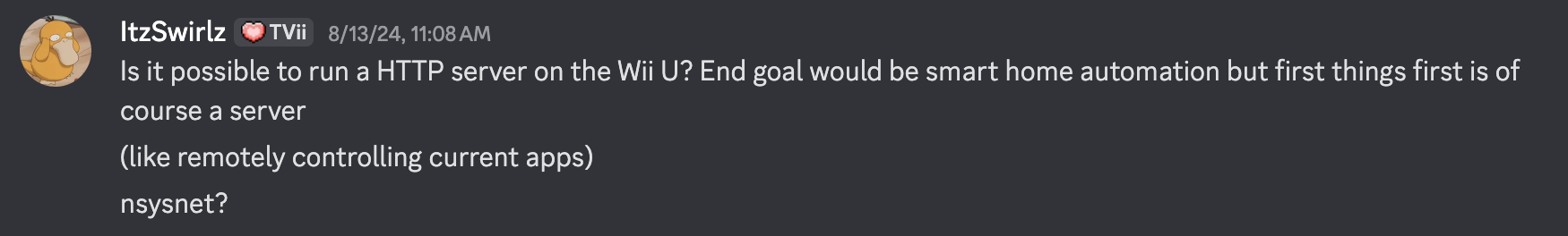 This meant that now there was a web server running on the Wii U, in the background, ready to respond to any request we throw at it - as long as it is defined.
